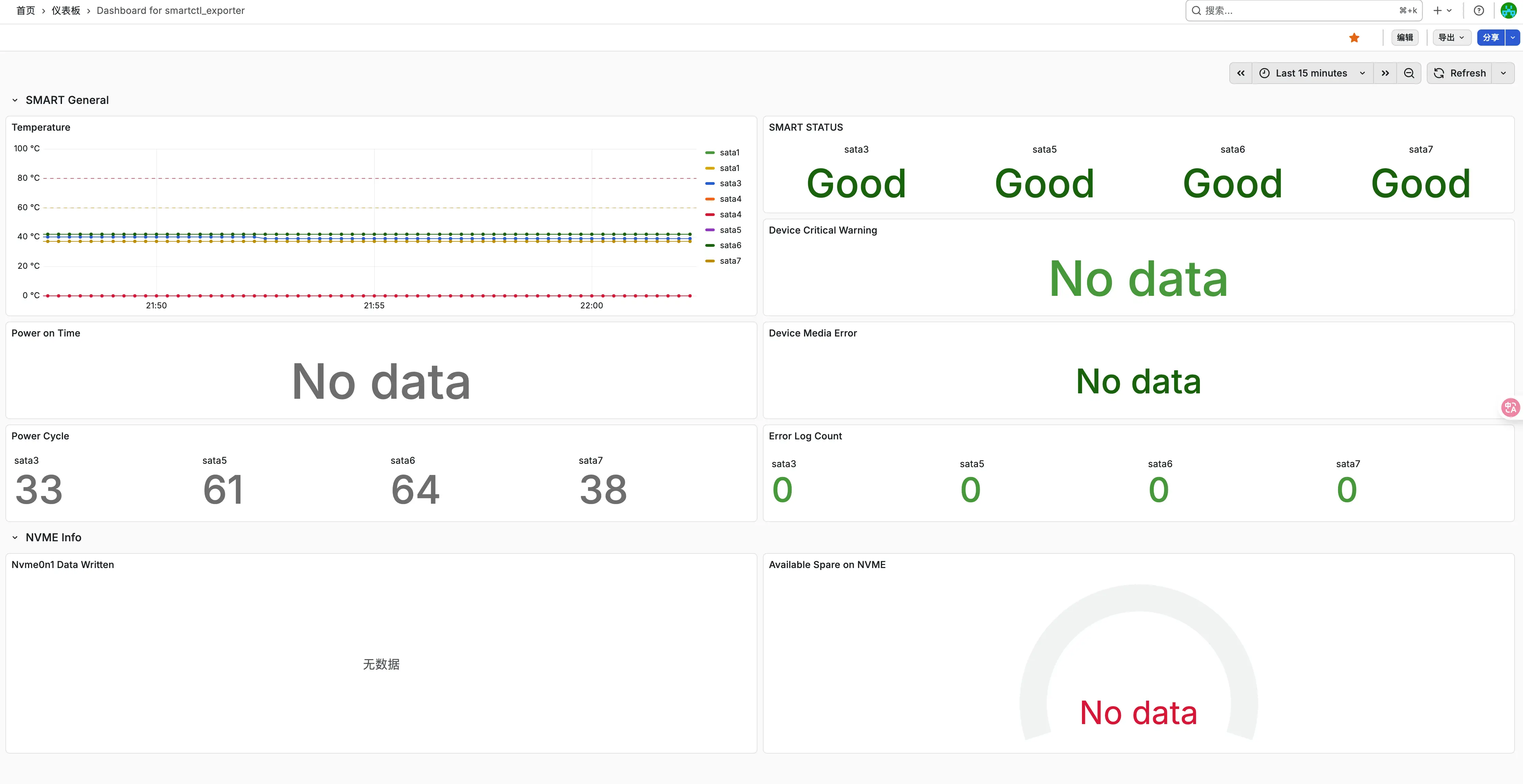 因为是黑群晖,有两块硬盘被识别成了SCSI 设备,没法查看SMART状态,所以没法监控到这两块硬盘的状态,为了稳定起见(估计硬件转接卡问题)不折腾了。